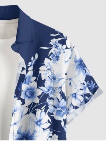 Plus Size Flowers Print Buttons Pocket Hawaii Shirt For Men - Cadetblue - S