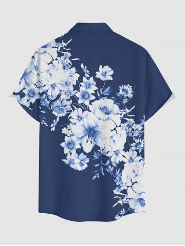 Plus Size Flowers Print Buttons Pocket Hawaii Shirt For Men - Cadetblue - L