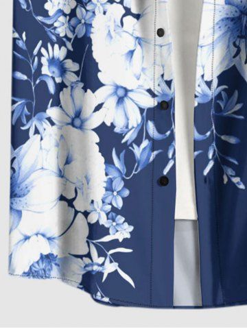 Plus Size Flowers Print Buttons Pocket Hawaii Shirt For Men - Cadetblue - Xl