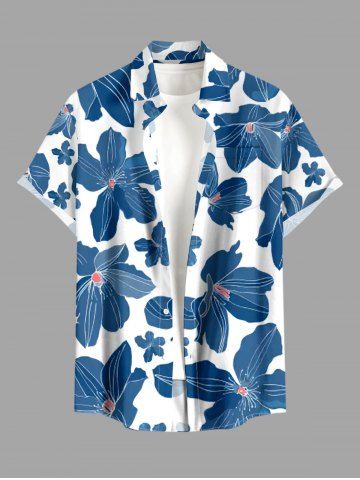 Plus Size Flowers Print Buttons Pocket Hawaii Shirt For Men - Blue - 3xl