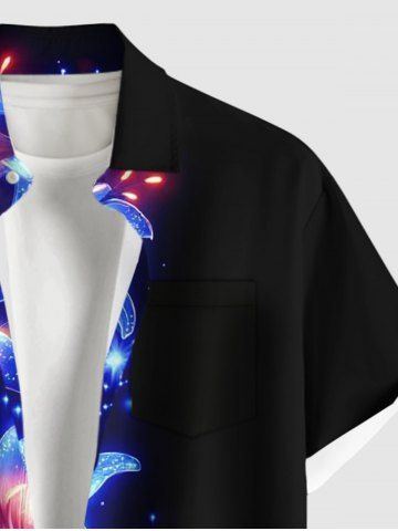 Plus Size Flowers Star Glitter 3D Print Buttons Pocket Hawaii Shirt For Men - Black - L