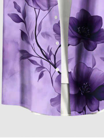 Plus Size Flowers Tie Dye Print Buttons Pocket Hawaii Shirt For Men - Purple - 5xl