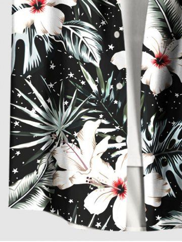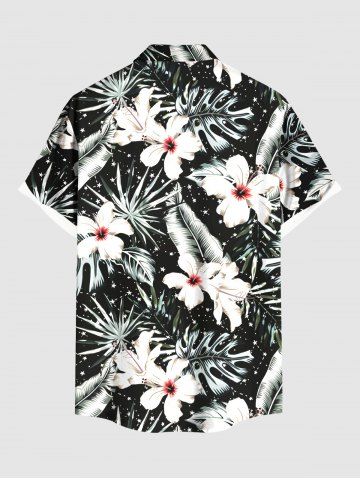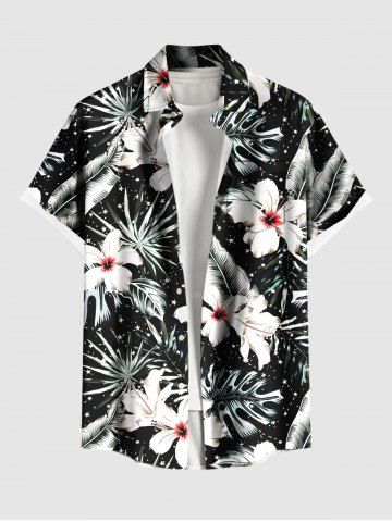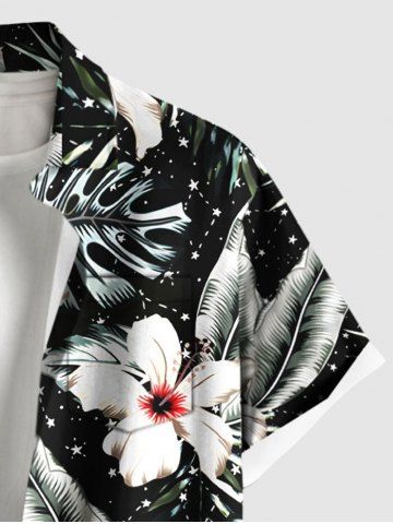 Plus Size Flowers Tropical Leaf Print Buttons Pocket Hawaii Shirt For Men - Black - 6xl
