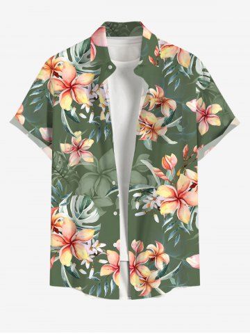 Plus Size Flowers Tropical Leaf Print Buttons Pocket Hawaii Shirt For Men - Green - 2xl