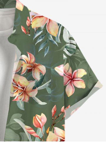 Plus Size Flowers Tropical Leaf Print Buttons Pocket Hawaii Shirt For Men - Green - 6xl