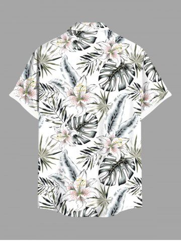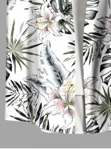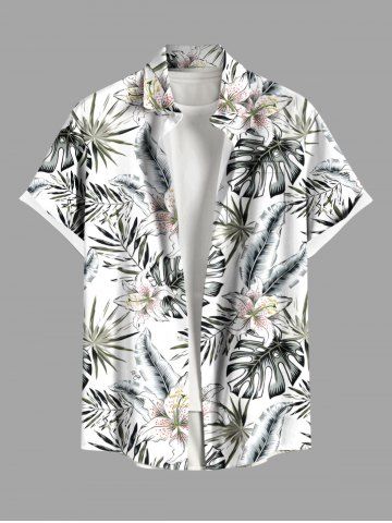 Plus Size Flowers Tropical Leaf Print Buttons Pocket Hawaii Shirt For Men - White - L