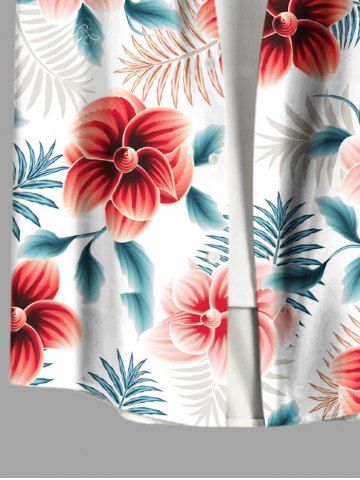 Plus Size Flowers Tropical Leaf Print Buttons Pocket Hawaii Shirt For Men - White - 6xl