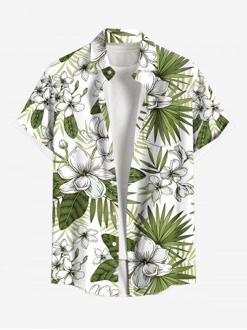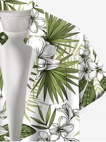 Plus Size Flowers Tropical Leaf Print Buttons Pocket Hawaii Shirt For Men - Green - 5xl