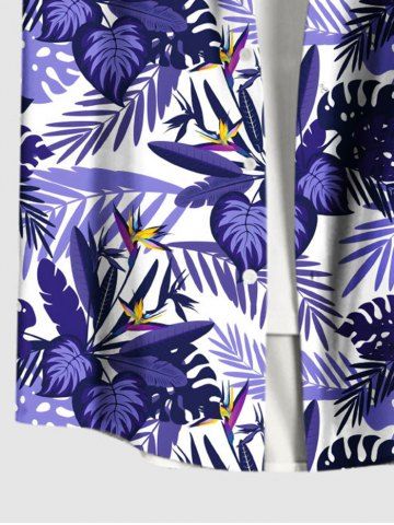 Plus Size Flowers Tropical Leaf Print Buttons Pocket Hawaii Shirt For Men - Purple - L