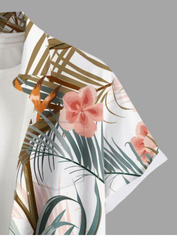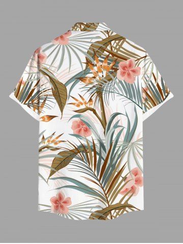Plus Size Flowers Tropical Leaf Print Buttons Pocket Hawaii Shirt For Men - White - S