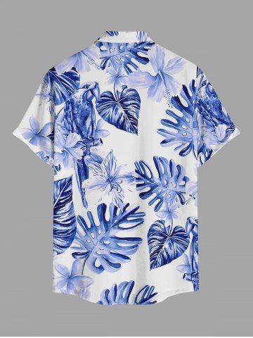 Plus Size Flowers Tropical Leaf Print Buttons Pocket Hawaii Shirt For Men - Sky Blue - 5xl