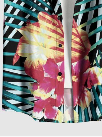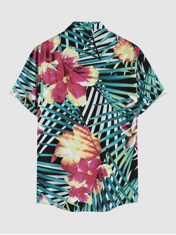 Plus Size Flowers Tropical Leaf Print Buttons Pocket Hawaii Shirt For Men - Green - L