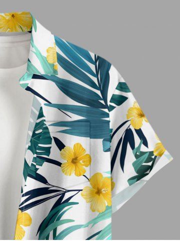 Plus Size Flowers Tropical Leaf Print Buttons Pocket Hawaii Shirt For Men - Green - S