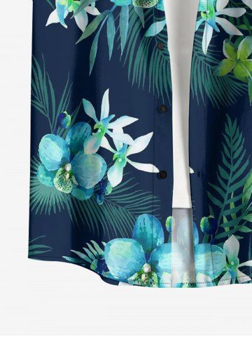 Plus Size Flowers Tropical Leaf Print Buttons Pocket Hawaii Shirt For Men - Deep Blue - 4xl