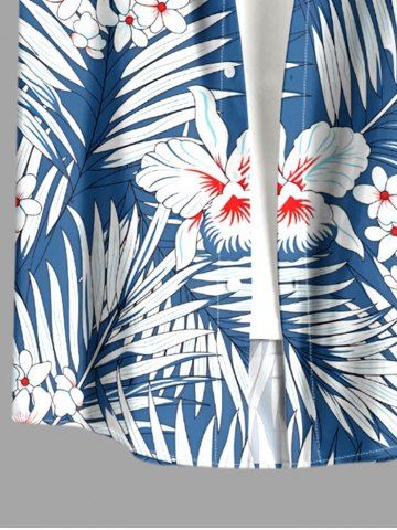 Plus Size Flowers Tropical Leaf Print Buttons Pocket Hawaii Shirt For Men - Blue - Xl