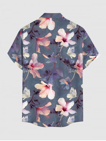 Plus Size Flowers Tropical Leaf Print Buttons Pocket Hawaii Shirt For Men - Concord - S