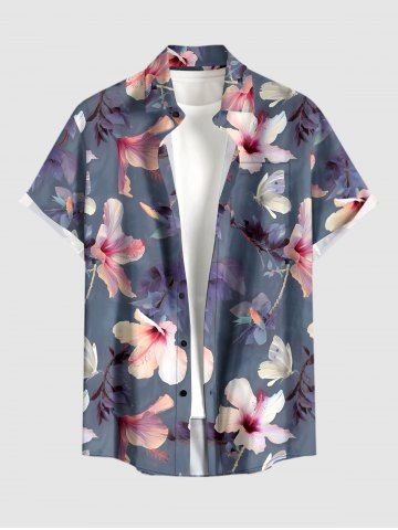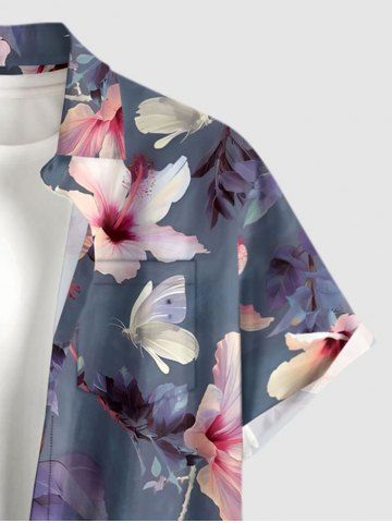 Plus Size Flowers Tropical Leaf Print Buttons Pocket Hawaii Shirt For Men - Concord - 3xl