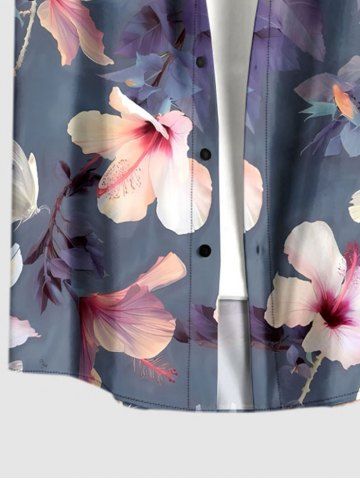 Plus Size Flowers Tropical Leaf Print Buttons Pocket Hawaii Shirt For Men - Concord - 5xl