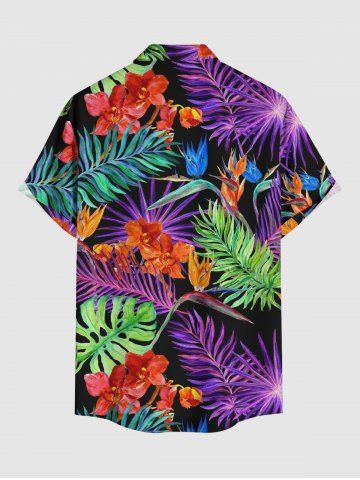 Short Sleeves Shirts > Plus Size Flowers Tropical Leaf Print Buttons Pocket Hawaii Shirt For Men