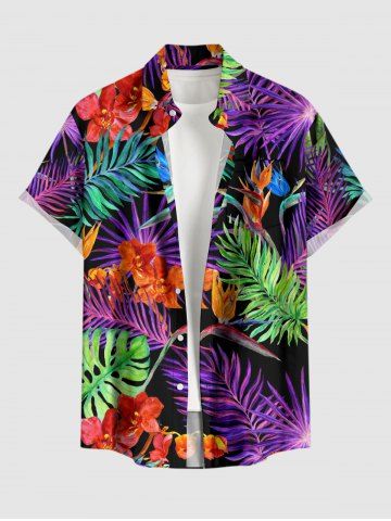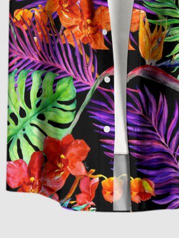 Short Sleeves Shirts > Plus Size Flowers Tropical Leaf Print Buttons Pocket Hawaii Shirt For Men