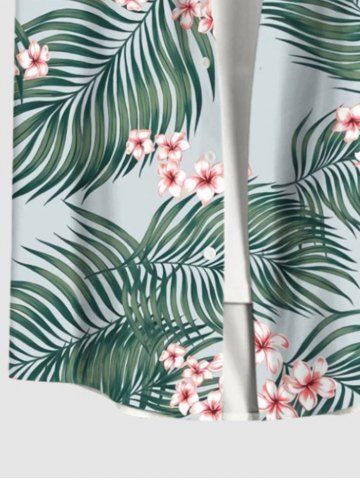 Plus Size Flowers Tropical Leaf Print Buttons Pocket Hawaii Shirt For Men - Light Green - 4xl