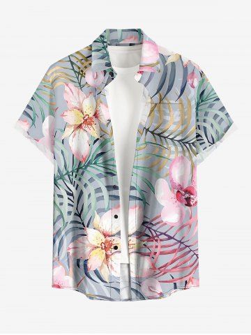 Plus Size Flowers Tropical Leaf Print Buttons Pocket Hawaii Shirt For Men - Dark Gray - 5xl