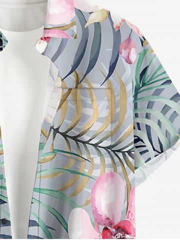 Plus Size Flowers Tropical Leaf Print Buttons Pocket Hawaii Shirt For Men - Dark Gray - 6xl