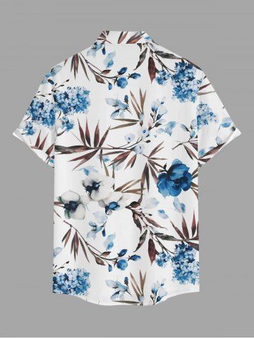 Plus Size Flowers Tropical Leaf Print Buttons Pocket Hawaii Shirt For Men - White - 4xl