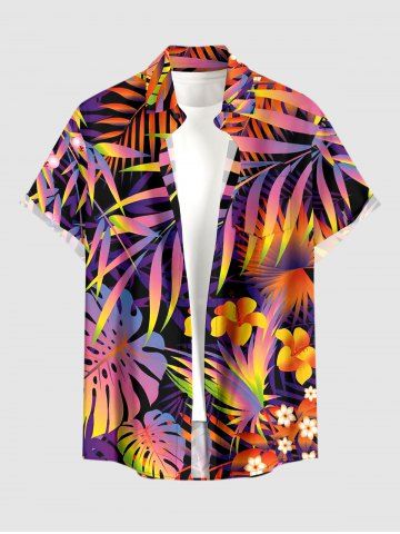 Short Sleeves Shirts > Plus Size Flowers Tropical Leaf Print Buttons Pocket Hawaii Shirt For Men