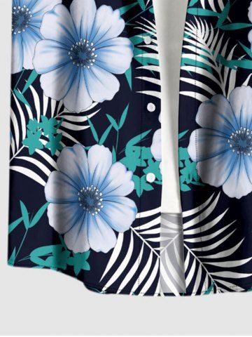 Short Sleeves Shirts > Plus Size Flowers Tropical Leaf Print Buttons Pocket Hawaii Shirt For Men