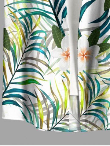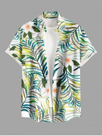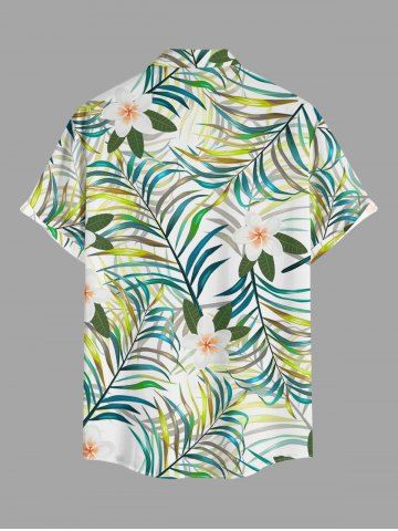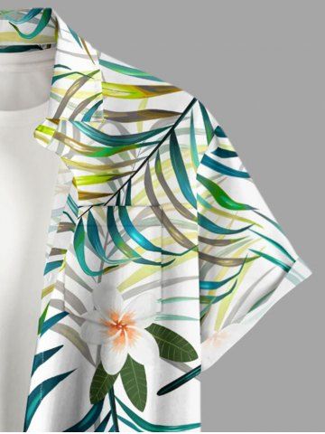 Plus Size Flowers Tropical Leaf Print Buttons Pocket Hawaii Shirt For Men - Light Green - M