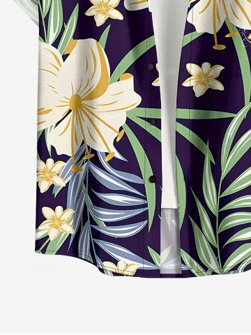 Short Sleeves Shirts > Plus Size Flowers Tropical Leaf Print Buttons Pocket Hawaii Shirt For Men
