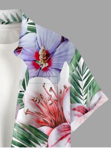 Short Sleeves Shirts > Plus Size Flowers Tropical Leaf Print Buttons Pocket Hawaii Shirt For Men