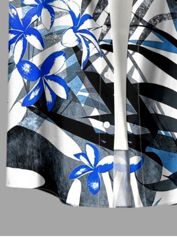 Plus Size Flowers Tropical Leaf Print Buttons Pocket Hawaii Shirt For Men - Blue - 3xl