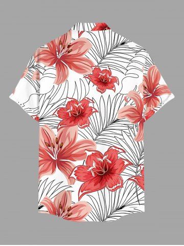 Plus Size Flowers Tropical Leaf Print Buttons Pocket Hawaii Shirt For Men - Coral Pink - M