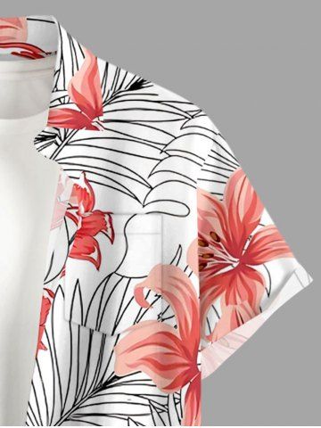 Plus Size Flowers Tropical Leaf Print Buttons Pocket Hawaii Shirt For Men - Coral Pink - 2xl