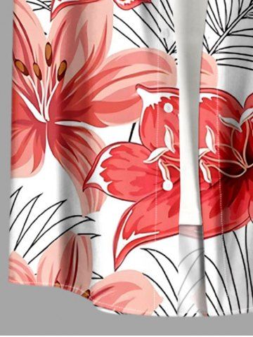 Plus Size Flowers Tropical Leaf Print Buttons Pocket Hawaii Shirt For Men - Coral Pink - 6xl