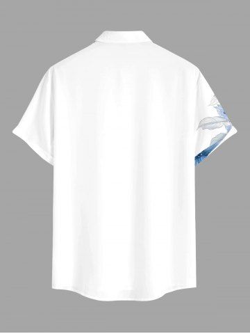 Plus Size Flowers Tropical Print Buttons Pocket Hawaii Shirt For Men - White - S