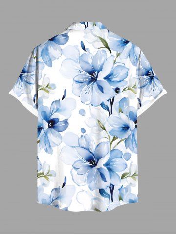 Plus Size Flowers Watercolor Print Buttons Pocket Hawaii Shirt For Men - White - 2xl