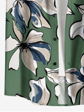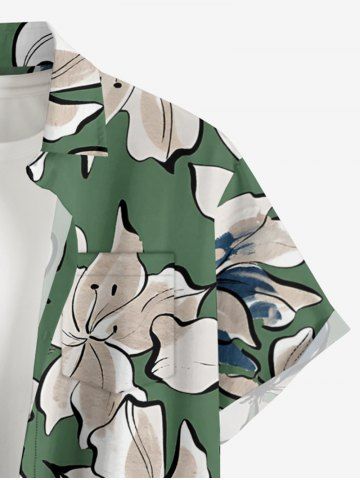Plus Size Flowers Watercolor Print Buttons Pocket Hawaii Shirt For Men - Light Green - M