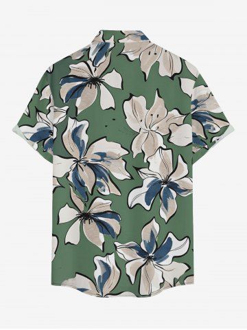 Plus Size Flowers Watercolor Print Buttons Pocket Hawaii Shirt For Men - Light Green - L