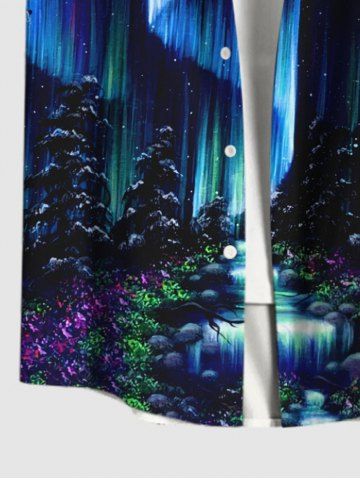Plus Size Forest Stone Waterfall Galaxy Glitter 3D Print Buttons Pocket Hawaii Shirt For Men - Black - S