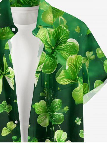 Short Sleeves Shirts > Plus Size Four Leaf Clover Print St. Patrick's Day Button Pocket Shirt For Men
