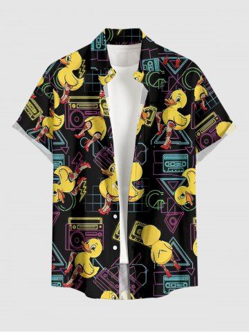 Plus Size Funny Duck Radio Tape Print Hawaii Button Pocket Shirt For Men - Black - 6xl