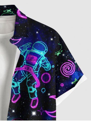 Plus Size Galaxy Astronaut Star Spaceship Print Buttons Pocket Hawaii Shirt For Men - Black - M