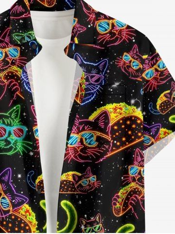 Plus Size Galaxy Cat Hot Dog Print Buttons Pocket Hawaii Shirt For Men - Black - Xl