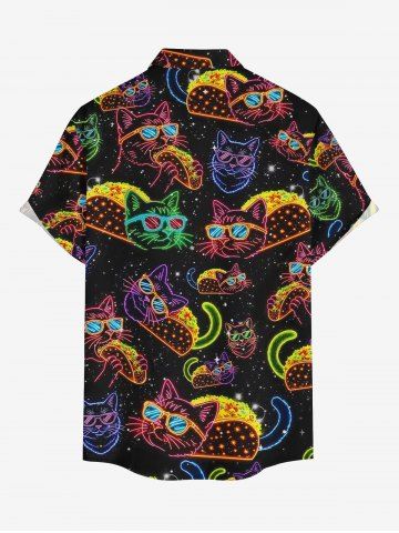 Plus Size Galaxy Cat Hot Dog Print Buttons Pocket Hawaii Shirt For Men - Black - 2xl