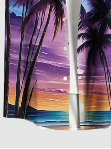 Plus Size Galaxy Coconut Tree Seascape Print Buttons Pocket Hawaii Shirt For Men - Purple - 5xl