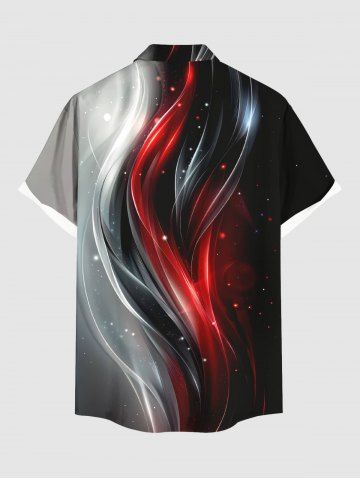 Short Sleeves Shirts > Plus Size Galaxy Curve Colorblock Glitter 3D Print Buttons Pocket Shirt For Men