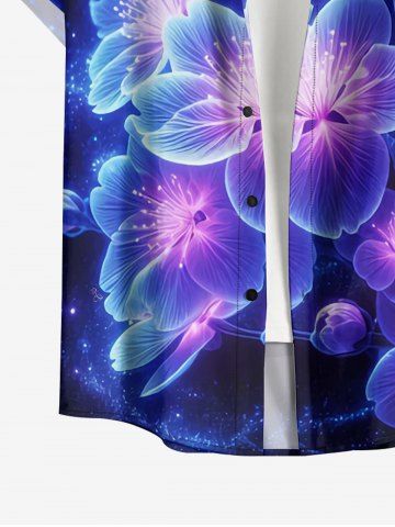 Plus Size Galaxy Flowers Print Buttons Pocket Hawaii Shirt For Men - Deep Blue - L